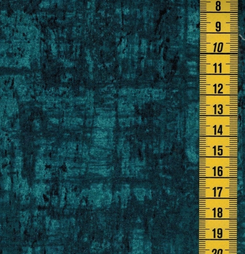 Tissu de patchwork 100% coton de la marque Jordan Fabrics collection Nitty Gritty. Tissu faux-uni imprimé texturé dans des tons de vert bleu canard.