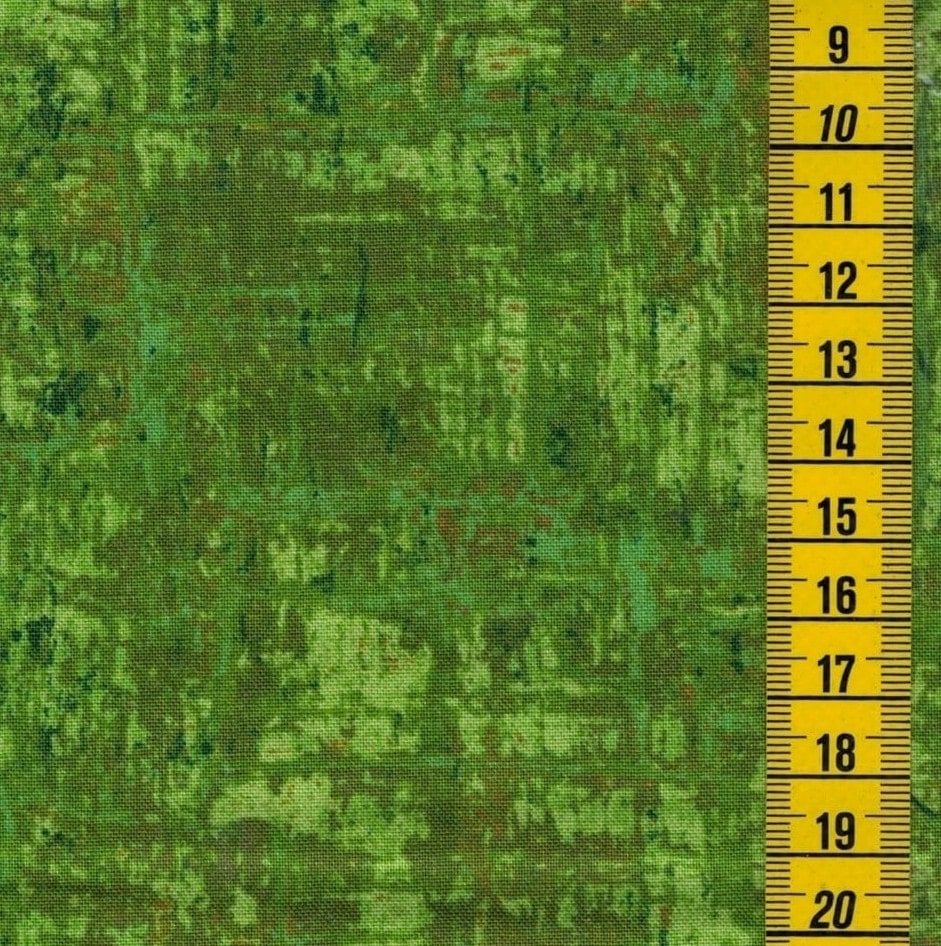 Tissu de patchwork 100% coton de la marque Jordan Fabrics collection Nitty Gritty. Tissu faux-uni imprimé texturé dans des ton de vert jaune et kaki.